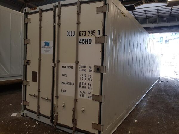 The 40′ or 12m HC ex-reefer, i.e. decommissioned former refrigerated container, is an excellent solution as an insulated container when you need a container that withstands moisture and heavy use. These containers are former reefer containers used for freight transport, with the refrigeration unit replaced by insulated sandwich panels.